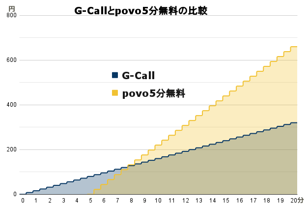 さらに、約8分以上電話すると、G-CALLの方が安かったりします。
