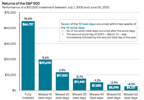 • 過去の研究では、市場の外にいた短期間が長期成果を大きく削ると繰り返し示されています。