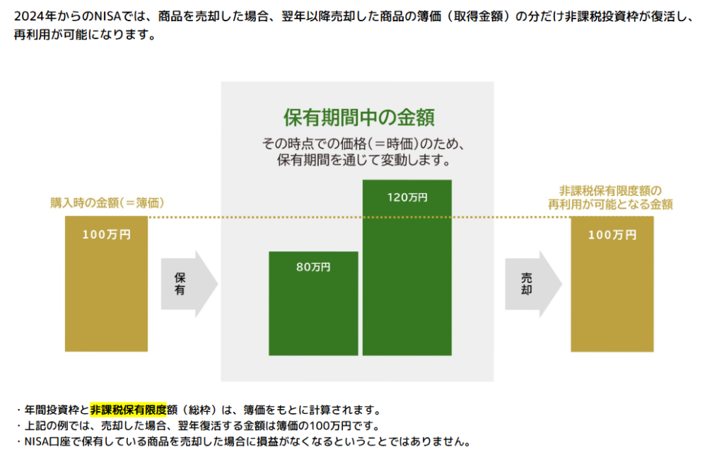 また、新NISAは、売却した分の枠を翌年以降に再利用できます。