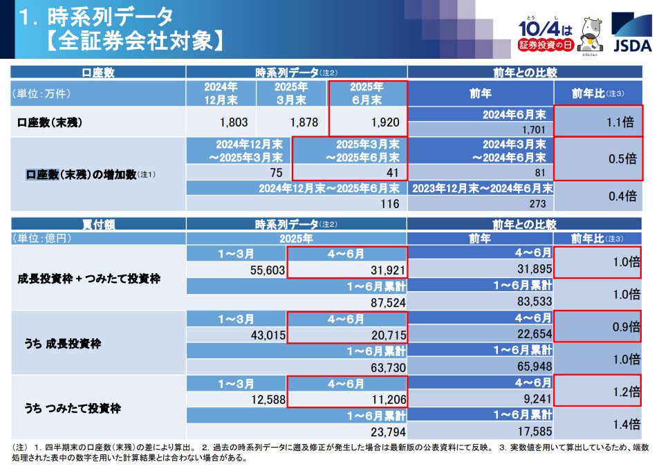 しかも、2025年6月末時点でNISA口座数は約1,920万口座まで増えています。