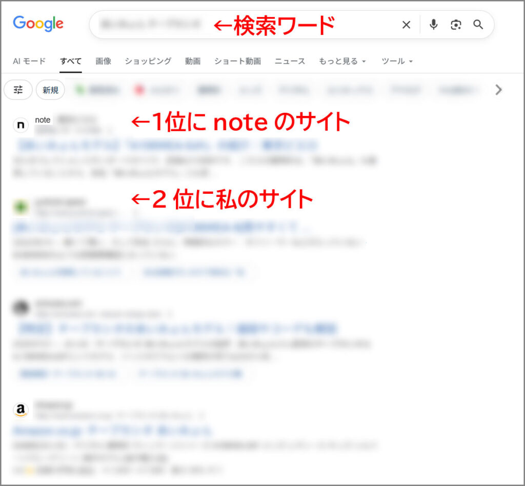特定のキーワードで「自分のサイトより上位にnoteの記事」が表示されているのに気づきました。