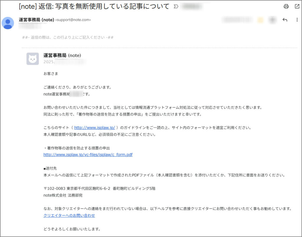 noteのサポートに削除依頼を出してしばらく経過。なかなか返信はありませんでした。