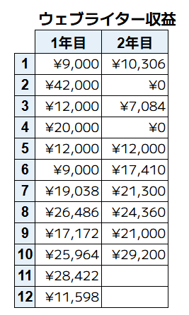 実際に私がウェブライターとして行動してみた収益の結果はこちらになります。